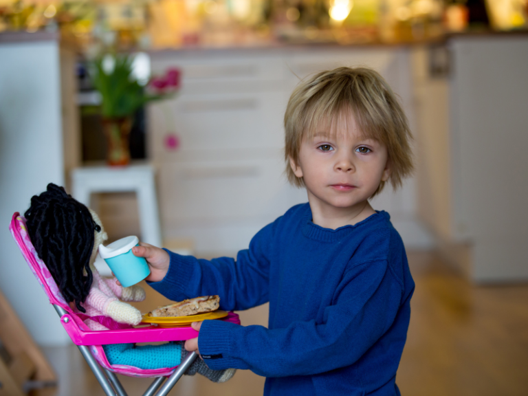 For siblings in the toddler, preschool and young school age range, a prop baby can be an interactive way to practice getting ready for the baby. Involve your child(ren) in learning how to play and engage with baby. This could be conversations around using gentle hands, learning songs to sing, and maybe even learning what to do when a baby is crying! Although a prop baby won’t replace your new addition, the introduction and practice can help your child understand the expectations of things you can and cannot do with a baby. There are also many opportunities for pretend play for caregivers to practice responding to multiple children’s needs. “Hey baby, your big brother was talking to mom and needs help. Please give me some time to help brother” or “Hey, big sister, baby sounds hungry. I can come to play with you after she is fed ” (Shout out to Dianna our paediatric physiotherapist for sharing this strategy) .